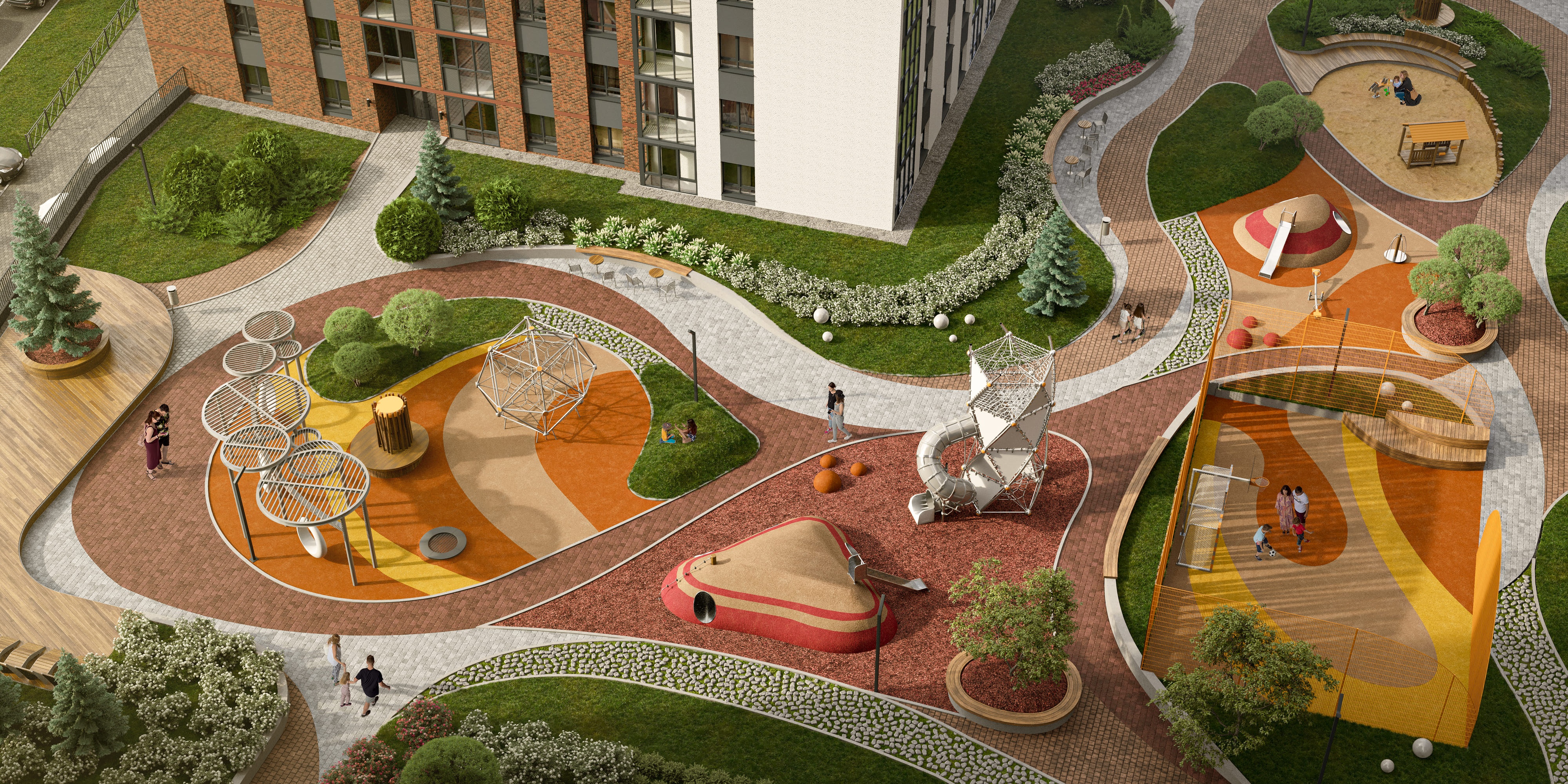 В доме LOQO топовый частный сад, а за ним — скоро будет сквер. В самом доме торговая группа с кафе, магазинами и всем необходимым для комфортной жизни.